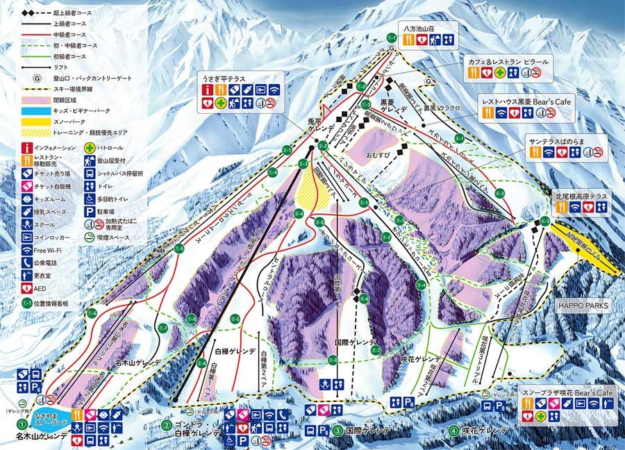 100%自然降雪のスノーパラダイス。ビギナーからエキスパートまで満足出来るコースバリエーションで、全コーススノーボード・スノースクート滑走可能。混雑知らずの白馬エリアの穴場的存在のスキー場です。